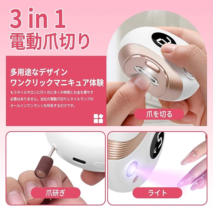 【2025 新登場-11 in 1】電動爪切り ジェルネイル オフ 電動 電動爪削り 自動爪切り 爪とぎ LEDライトUSB給電/充電式 ワンタッチ ブラシ付き 静音 低騒音 低振動 操作簡単 飛び散らない 持ち運びに便利 ネイルケア 電動つめきり 子供/大人/高齢者に向け ブラシ付き (淡白)