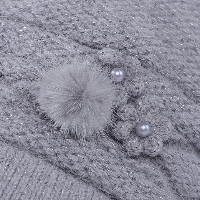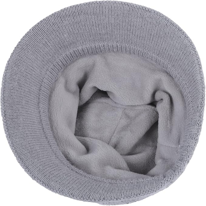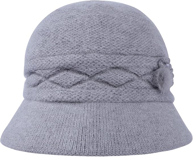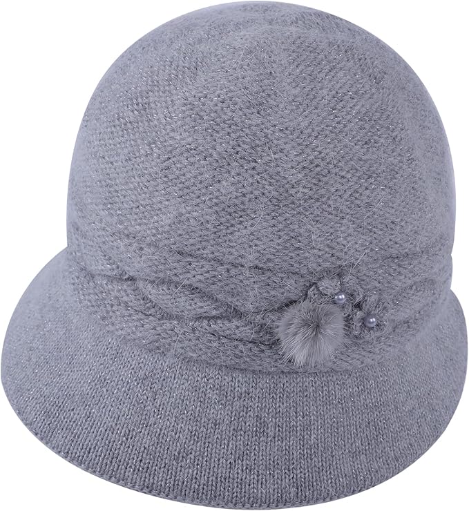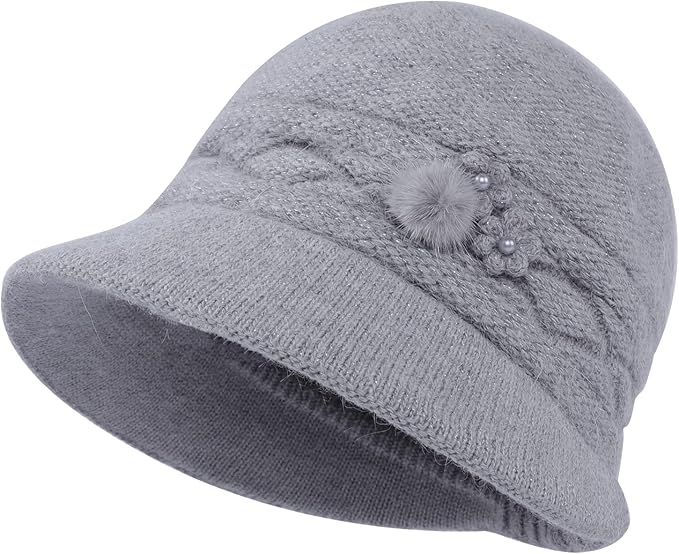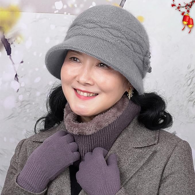 [Moonlove] ニット帽 レディース 帽子 婦人帽 ニットキャップ シニア 防寒帽子 つば付き ふわふわ 二重防寒 暖かい 秋冬 無地 花飾 お出かけ 旅行 アウトドア 散歩 おばあちゃん お母さん 40代‐90代 誕生日 新年 敬老の日 プレゼント