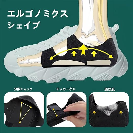 【新しいアップグレード】:新しい2-in-1のアップグレードデザイン、ヒールクッションカップ内蔵のソフトゲルは、効果的に衝撃を吸収することができ、かかととアーチをサポートし、クッション性を提供し、アップグレードされた通気性の穴は、より通気性と吸湿発散性、あなたの足が素敵で快適に保つことができます。