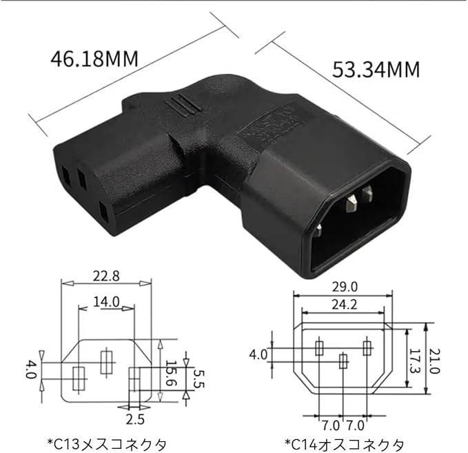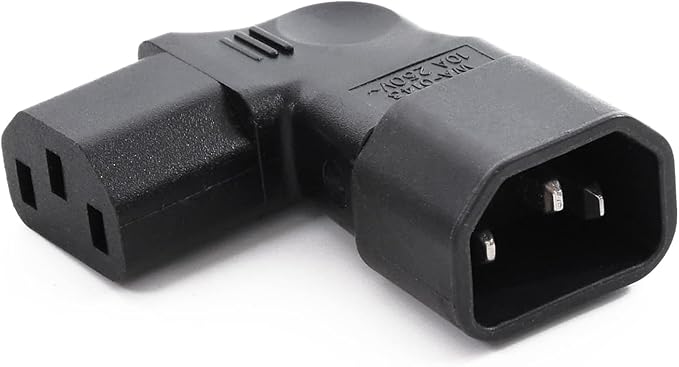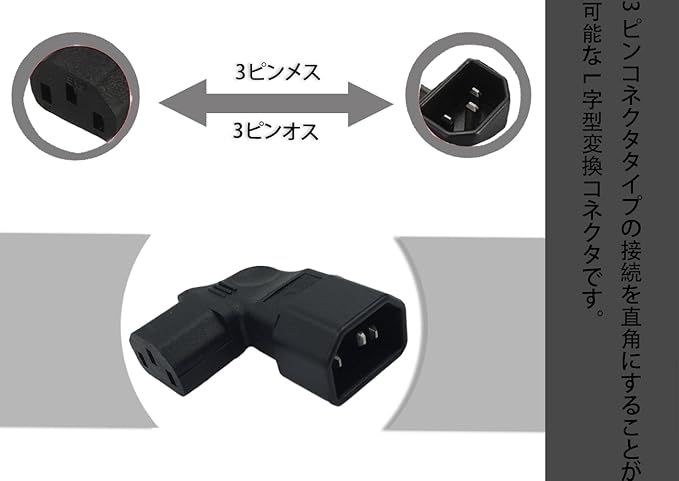 3ピン変換コネクター L型 右向き 直角 IEC 320 C14 3ピン オス→C13 メス 【定格:10A/250V】 電源延長アダプター 右曲げ 電源コード管理や配線スペースの確保に 【パソコン/テレビ/冷蔵庫/エアコンに対応!】。 (右に曲がる)