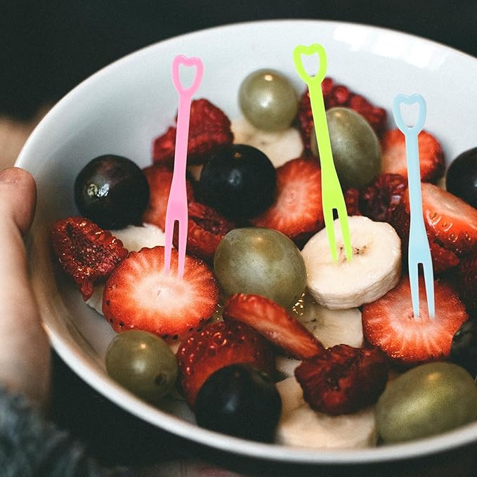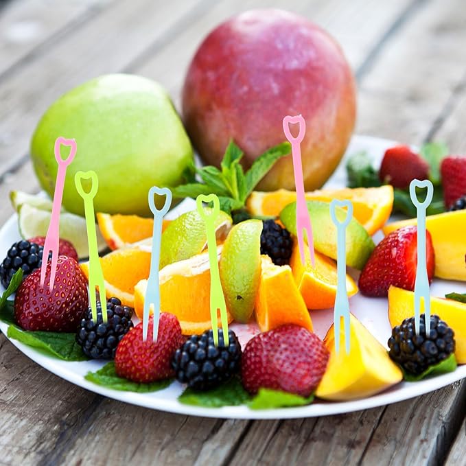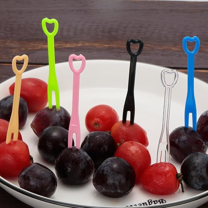 【使い捨てフルーツピック】フルーツピックはプラスチックで作られ、軽量で耐久性があり、持ち運びに便利で実用的である。