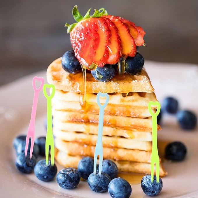 【お菓子ピック】持ち手が長いフルーツフォークは、直接手で持つ必要なく、食べ物や果物を選ぶのに便利です。