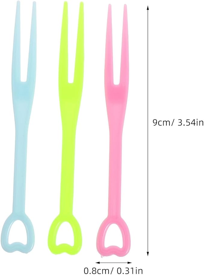 【二股のフルーツフォーク】:フルーツフォークは2歯のハート型のデザインを採用しており、かわいらしくて実用的です。