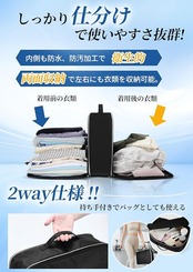 【プライバシーを守る設計&幅広いシーンで活躍】中身が透けない非メッシュ生地を採用しているため、下着など見られたくないデリケートな衣類も安心して収納できます。中央のファスナーを開ければ持ち手付きバッグとしてそのまま移動可能。旅行、出張、ジム、おむつポーチとしてはもちろん、自宅での季節ごとの衣類整理(衣替え)など、年間を通してマルチに活躍します。