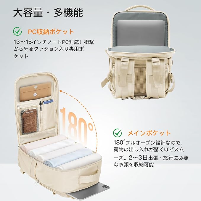 [Samfolk] リュック 大容量 40L 旅行 リュック メンズ バックパック 機内持ち込み 旅行バッグ リュックサック ビジネスリュック 防水 多機能 17.5インチPC対応 通学 通勤 トラベル 出張 3WAY