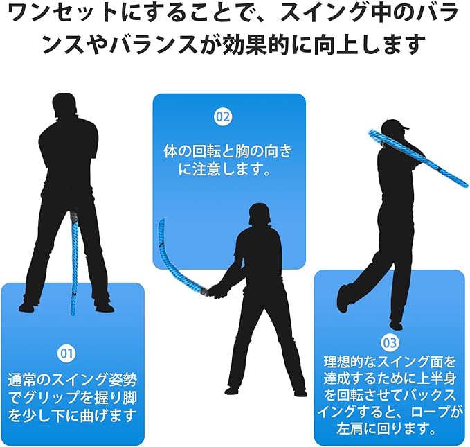 スイングスキルの向上:ゴルフロープは、すべてのゴルファーが必要とするスピード、リズム、敏捷性、スイングパワーの向上に焦点を当てています。
