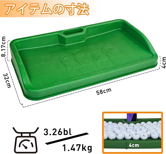 【プレミアムゴルフトレイ】-ゴルフボールを100個収納し、地面から4cm伸び、クラブを簡単に取り外すことができる市販のゴルフトレイ。