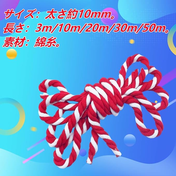 紅白ロープ 綿 紐 紅白ひも 太さ約10mm 長さ3m 10m 20m 30m 50m 式典の装飾 御神輿 除幕式 お祭り 催事 (3m)