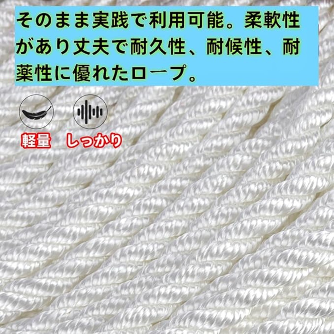 そのまま実践で利用可能。柔軟性があり丈夫で耐久性、耐候性、耐薬性に優れたロープ。