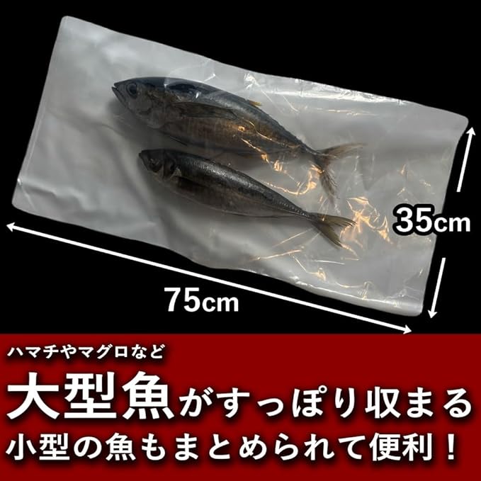 大型サイズで抜群の収納力 35cm 75cmの大容量長方形デザインは、クーラーに入らない大きな魚や観賞魚、さらには日用品の運搬にも最適です。この厚手ビニール袋は、釣り帰りに大物をそのまま入れられる便利さが特徴で、他にない多用途性を誇ります。アウトドア好きや家庭内での整理にも活用できる万能アイテムです。