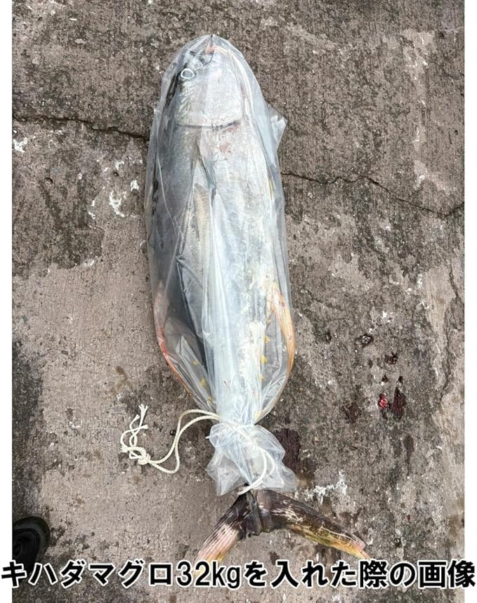 1mクラスのブリを入れても開口部を縛ることができるので、魚の汁漏れでクーラーなどを汚す心配を軽減。帰宅後の後片付けもラクに行なえます。