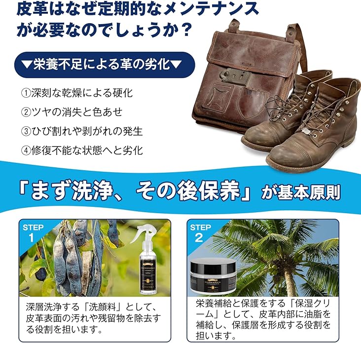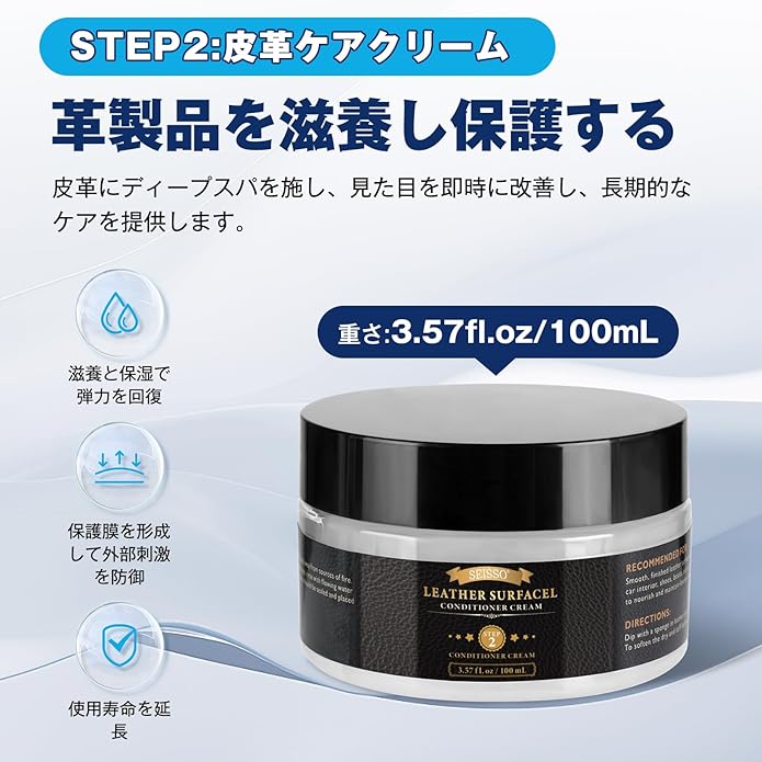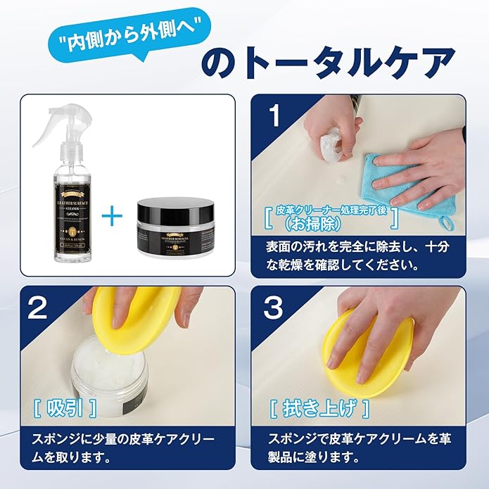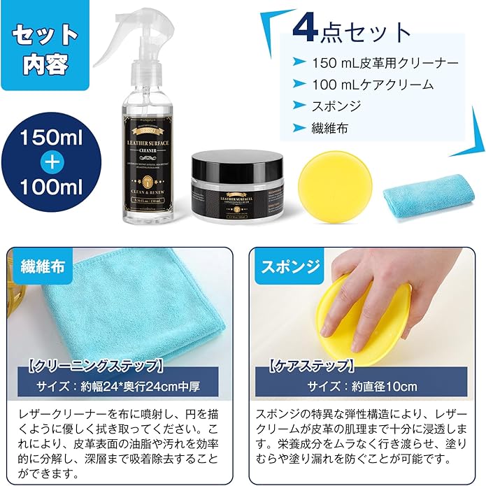 [SEISSO] レザークリーナー 革靴 手入れ レザークリーナー・コンディショナー 革 手入れ 本革クリーナー 革製品のメンテナンス 保護つや出し剤 栄養 保革 革の汚れ落とし 車 シート ソファー 革製品 靴磨きセット【150+100ML】