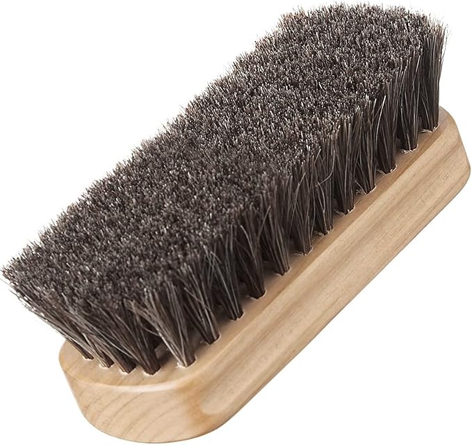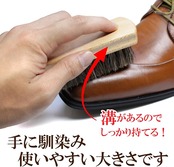 布 や スポンジ でクリームを添付した後の仕上げに 靴クリームを塗った後、 ブラッシングすると 靴になじみ、伸ばすことにより光沢もでます。馬毛は革靴に馴染みしっかりと靴に光沢感を与えます。