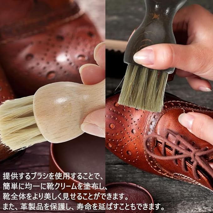【使いやすい】直接靴クリームや他のケア用品に手を触れる必要がありません。提供するブラシを使用することで、簡単に均一に靴クリームを塗布し、靴全体をより美しく見せることができます。また、革製品を保護し、寿命を延ばすこともできます。