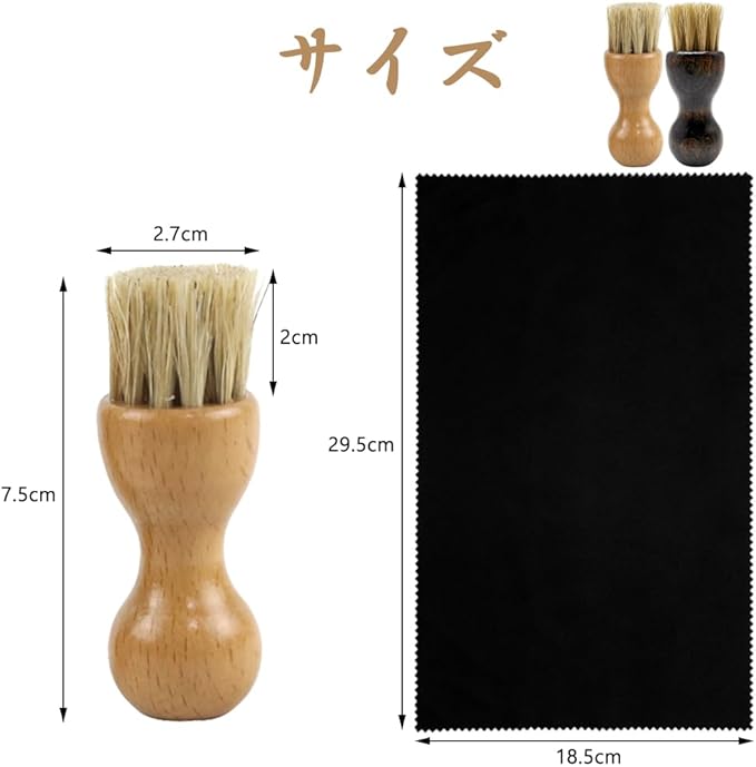 【セット内容】靴クリーム塗布用ブラシ、2個入り。製品には、靴のクリーニングや革靴の研磨に使用できるクリーニングクロスが含まれています。