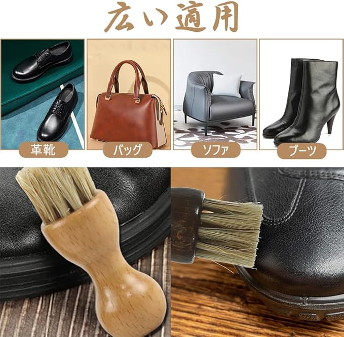 【広い適用】当社の靴クリームブラシセットは、革ブーツ、スムースレザー(一般的な表革)の靴、バッグ、ソファなど、さまざまな革製品に適用できます。