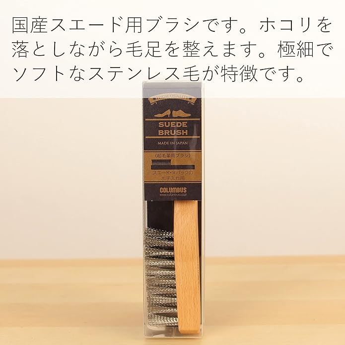 日本製シューズブラシ 極細ステンレス毛・ソフトタッチ スエードブラシ 起毛革用・スエード・ヌバック・ムートン