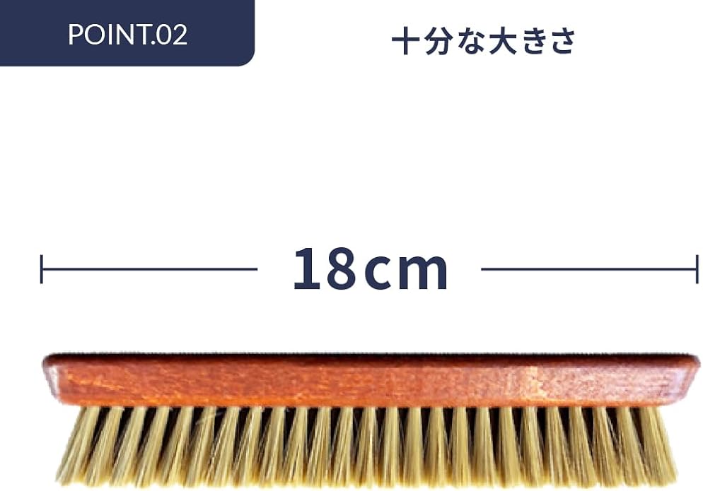 靴クリームを塗った後、クリームを伸ばしたり、なじませたりする→かたい毛(強い毛)が最適です! クリームを靴になじませ、伸ばすことにより光沢もでます。コシがある化繊毛は長く使えてしっかりと靴に光沢感を与えます。プロは毛がしっかりとしていて少し硬めの化繊毛を使用しています。その最大の特長は靴クリームを塗った後にクリームを全体に伸ばしたり、皮革に馴染ませたりするときの使い勝手の良さにあるのです。握りやすさと小さくなく、大きくもないジャストサイズも人気の秘密です。プロブラックブラシは黒クリーム用、プロホワイトブラシは茶系用など、ブラシで色分けができるようになりましたので色違いで是非どうぞ! ! ドイツ製・イタリア製も選べるようになりました。同サイズ・同様の化繊毛で、柄の部分の色が黄土色(ドイツ製)と赤茶色(イタリア製)の違いがありますが仕上げ用ブラシとしては両者とも同等のクオリティです。 ■用途:スムースレザー(一般的な表革)の靴、パンプス、ブーツ■毛の種類:化繊毛■サイズ:183mm 50mm 毛の長さ約25mm■原産国:ドイツ製またはイタリア製
