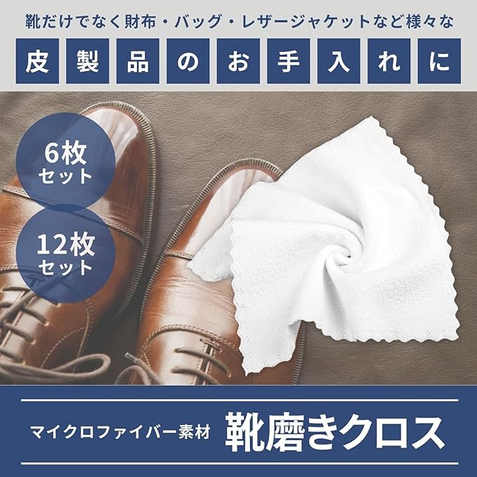 靴だけでなく財布やバッグ、レザージャケットなど様々な革製品のお手入れに便利なマイクロファイバー素材のクロス。