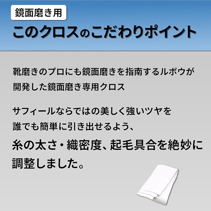 靴磨きのプロの意見を取り入れ開発した、鏡面磨き専用の、ソフトできめ細かいコットン・フランネルです。