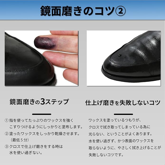 ●鏡面磨きをする際に水を含み過ぎない適度な厚みが、コットンからのワックス離れを良くさせ、ワックスが革に定着しやすいのも特徴です。