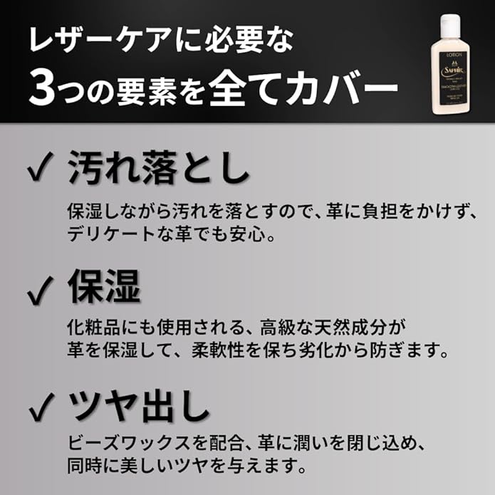 [サフィール] 革製品 手入れ 化粧品レベルの天然原料 レザーバームローション 汚れ落とし クリーナー 補修 革 レザークリーム 靴磨き 革靴 バッグ オイル 125ml