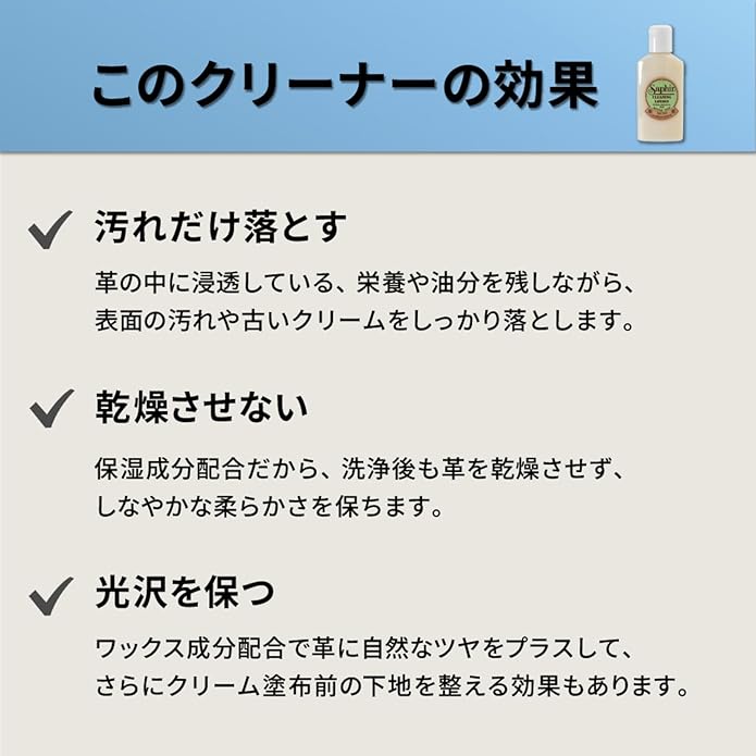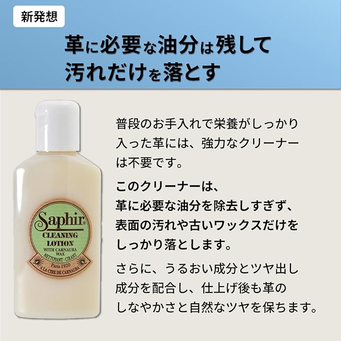 [サフィール] 革にやさしい クリーニング ローション レザークリーナー 革靴 靴 クリーナー 汚れ落とし 靴磨き 革製品 手入れ レザー バッグ スニーカー 財布 ソファー ベルト 革ジャン シューケア 125ml