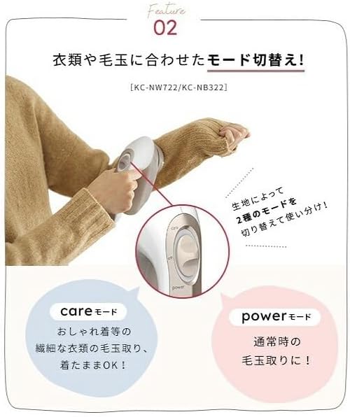 おしゃれ着等の繊細な衣類の毛玉取り、着たままで毛玉取りに活躍する「Careモード」