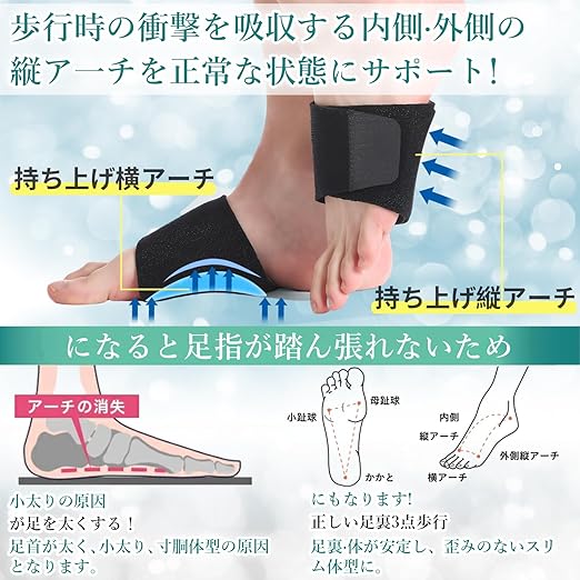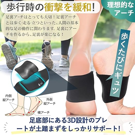 【取り付けが簡単】扁平足 サポーター 日常使用では、裸足に直接装着して違和感なく使用することができます。靴下やストッキング、靴の内側にも装着することができます。ヨガやジョギング、その他のスポーツの際にも装着することができます。土踏まず 商品仕様:2足4枚セット。カラー:ブラック。