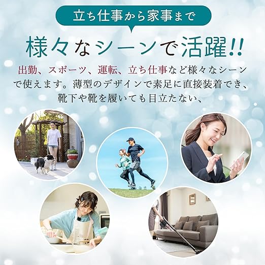 【通気性抜群】土踏まず インソール 高品質なナイロンで作られた薄型の装着部分は汗を吸い取りやすく、通気性が良く、足が悪臭を放つことはありません。薄型の設計のため、靴を履いても違和感がありません。薄型の設計のため、靴下やストッキングを履いた状態でも自然にフィットし、靴を履いて違和感なく歩くことができます。