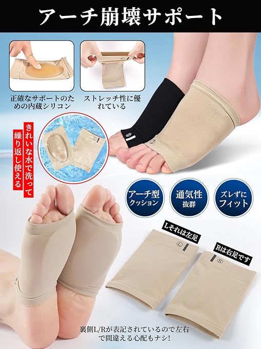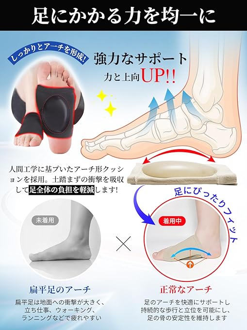 土踏まず サポーター 足裏 アーチ 立ち仕事 扁平足 アーチサポーター 伸縮性 通気性 衝撃吸収 負担 軽減 土踏まずを押し上げる ウォーク フリー 快適歩行 男女兼用