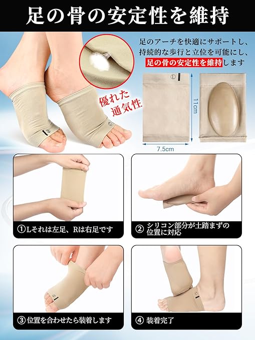 【商品仕様】土踏まず サポーター、サポーター 足裏 アーチ、数量: 2 ペア/1 ペア。カラー:ブラック/肌色/グレー。サイズ:フリーサイズ。扁平足 サポーター 土踏まずサポーター ほとんどの男性と女性の足にフィットします。当社のアーチサポートパッドは洗濯可能で、洗濯後も機能が失われることはありません。