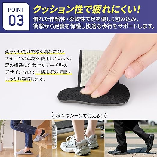 【現役理学療法士監修】 現役理学療法士平田聡也氏監修。長時間の立ち仕事や、歩行、ランニング時、その他スポーツ等の使用で、足の負担を感じている方たち、あらゆる足型の方にもフィットするように設計されています。