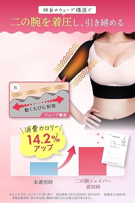 【キュッと引き締め細腕実感】着用して運動することで発汗を促し、ウォーキング、ヨガ、ジムでのトレーニングやエクササイズなどのスポーツはもちろん、日常の家事、育児、仕事のデスクワークなどの座位や立位などあらゆる体勢でサポートを実感。伸縮性と通気性に優れた厳選素材を使用しているので、着用中も心地よいフィット感が続き、長時間でもずっと快適なホールド感を実現。忙しい日常でもサッと気軽に引き締め習慣を取り入れることができます。