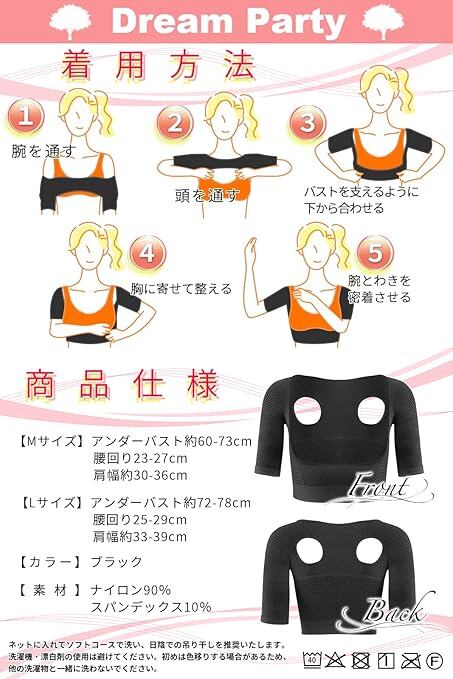 【 商品使用】 Mサイズ:アンダーバスト約60-73cm/腰回り23-27cm/肩幅約30-36cm Lサイズ:アンダーバスト約72-78cm/腰回り25-29cm/肩幅約33-39cm カラー:ブラック ナイロン90%/スパンデックス10% 洗濯方法:ネットに入れ、ソフトコースで洗い、日陰での吊り干しを推奨いたします。洗濯機・漂白剤の使用は避けてください。初めは色移りする場合があるため、他の洗濯物と一緒に洗わないでください。