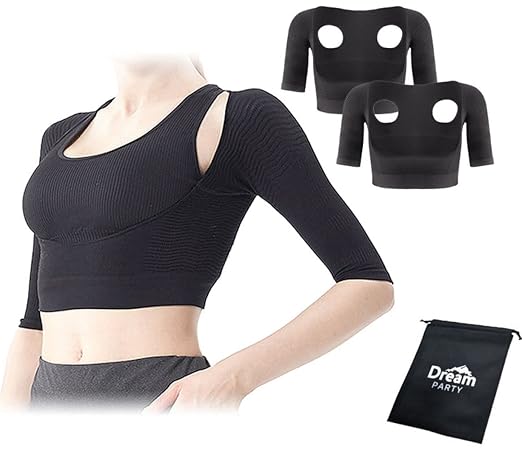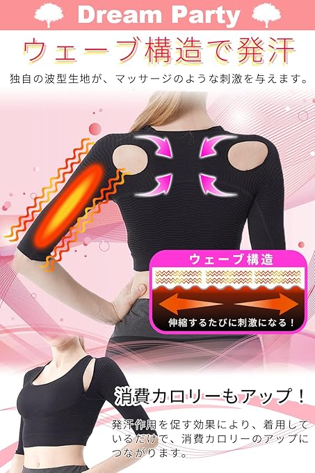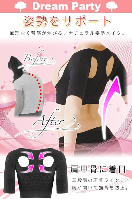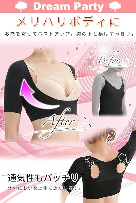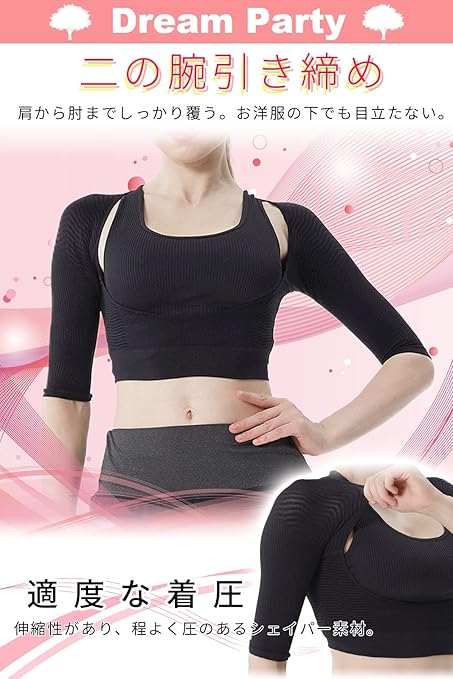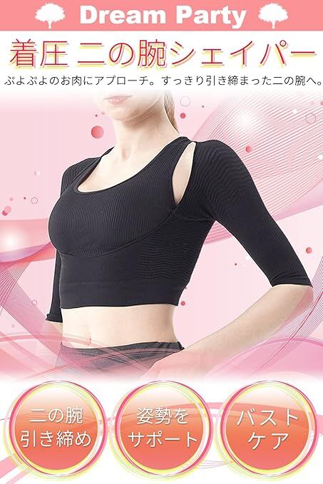 [DREAMPARTY] 【理学療法士監修】 二の腕 着圧 二の腕シェイパー レディース 【2枚セット】 加圧 姿勢 背筋 猫背 引き締め 腕用 サポーター 【日本検査】 腕細見え バストケア ブラック 黒 (M) dp226