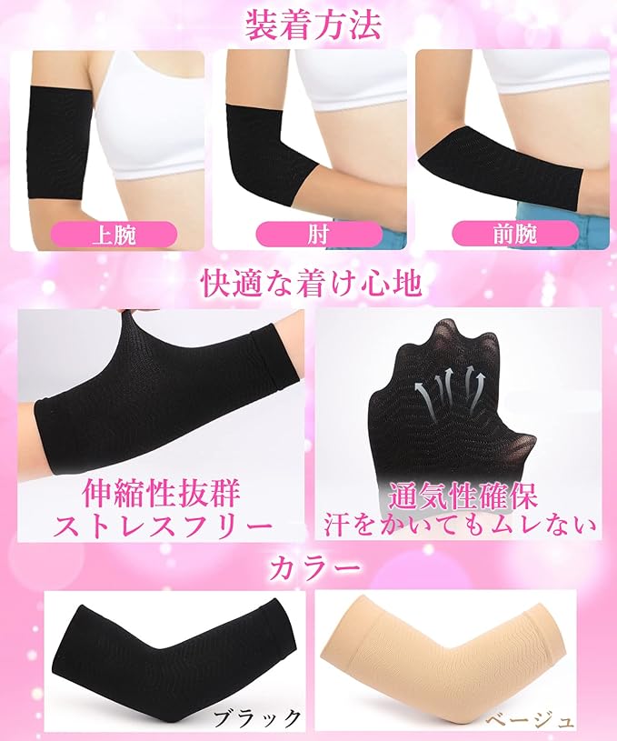 [Carerac] 腕サポーター 二の腕シェイパー 二の腕サポーター 二の腕痩せ 美腕アームカバー 引き締め 手袋 二の腕着圧