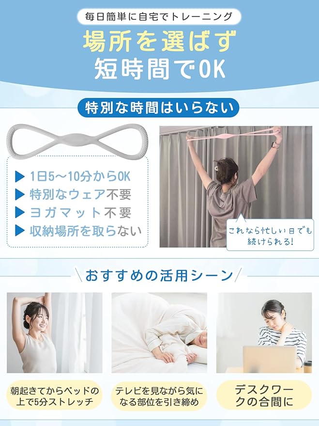 ✅【毎日続けたくなる便利さ】朝・昼・夜のスキマ時間に活用!朝:目覚めストレッチ。昼:デスクワーク合間の肩こり解消。夜:寝る前のリラックスヨガ。収納場所を取らず、旅行・出張にも携帯可能