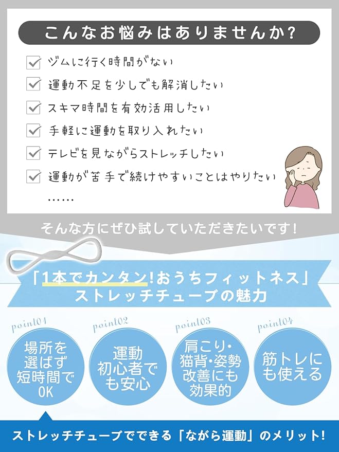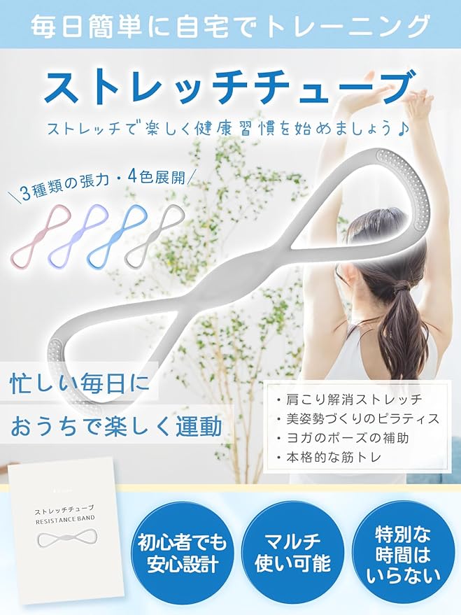 ✅【初心者に優しい使いやすさ】軽量(約105g)&コンパクト(収納・持ち運び楽々)。特別な準備不要(ウェア不要、1日5分からOK)。ながらストレッチ対応(テレビ・デスクワーク中にも)。おしゃれなパステルカラー(インテリアに馴染む)