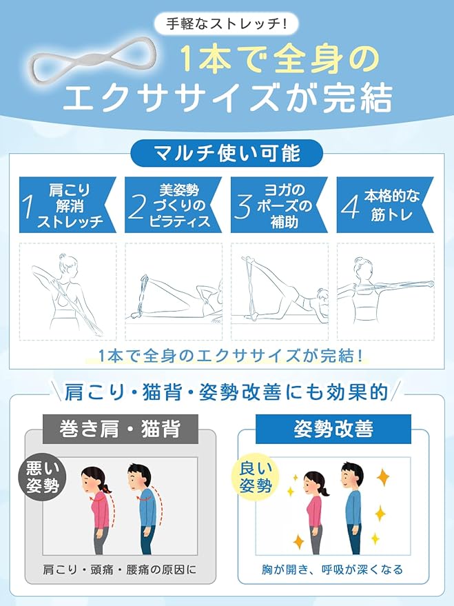✅【マルチな使い方で全身ケア&トレーニング】肩こり・猫背・姿勢改善(肩甲骨ストレッチ、背筋強化)。筋トレ(二の腕・体幹・お尻の引き締め)。ヨガ・ピラティス補助(ポーズの深度調整や可動域拡大)