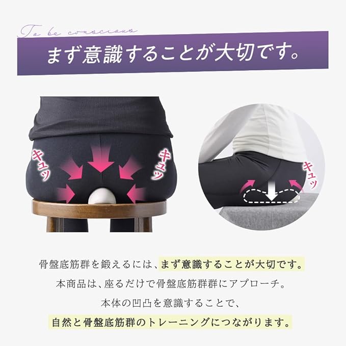 ✅本商品は、座るだけで骨盤底筋群にアプローチ。本体の凹凸を意識することで、自然と骨盤底筋群のトレーニングにつながります。(ソフトな素材感の為、安心してご使用いただけます。)