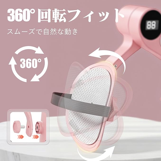 【360 回転パッド 肉厚TPE素材】 太もものラインに合わせてパッドが360 回転し、自然にフィット。肌に触れる部分は柔らかい厚手TPE素材を採用しており、強い力を入れても痛くなりにくい設計です。快適だからこそ、毎日続けられます