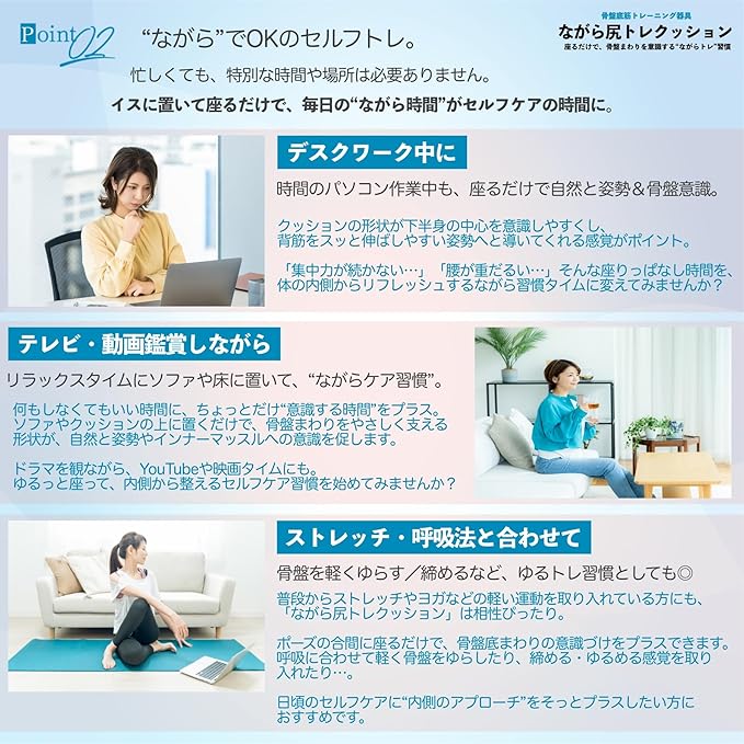 普段のイスや床に置くだけで、毎日の“座る時間”をセルフケア習慣に。