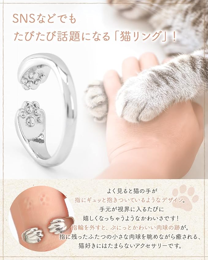 [ケーエルユー] 猫 指輪 肉球 跡が残る フリーサイズ リング 調節可能 ファッションリング 人気