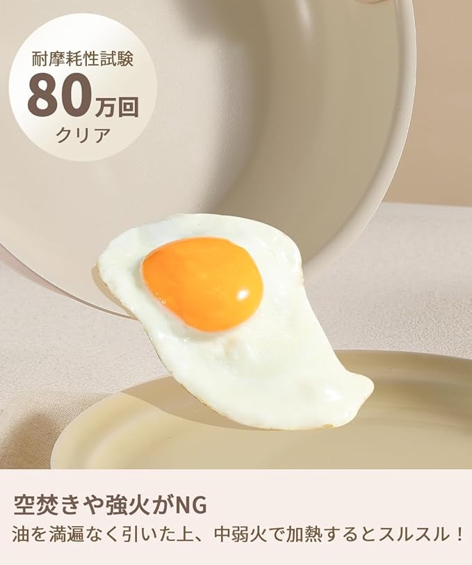 材質 セラミックコートを使用しており、PTFE、PFAS、PFOA、PFOSおよびその他の有害な化学物質を一切含んでいません。