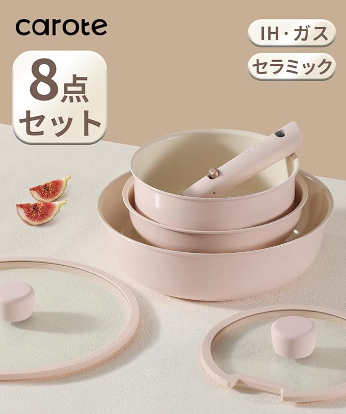 CAROTE カローテ セラミックコーティング フライパン セット 8点 IH・ガス火対応 フッ素不使用 体に害のない くっつきにくい 鍋セット 取っ手が取れる お手入れ簡単 食洗機対応 オーブン対応 PTFE PFOA PFOS フリー軽量設計 桜色 ピンク Pusanシリーズ【365日保証】【新生活応援】【耐摩耗性テスト50万回クリア 】
