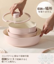 【60%省スペース設計】独自の取り外し可能なハンドルでコンパクトに収納でき、狭いキッチン、RV、寮の部屋などに最適です。従来の調理器具と比べて最大60%の省スペースを実現。