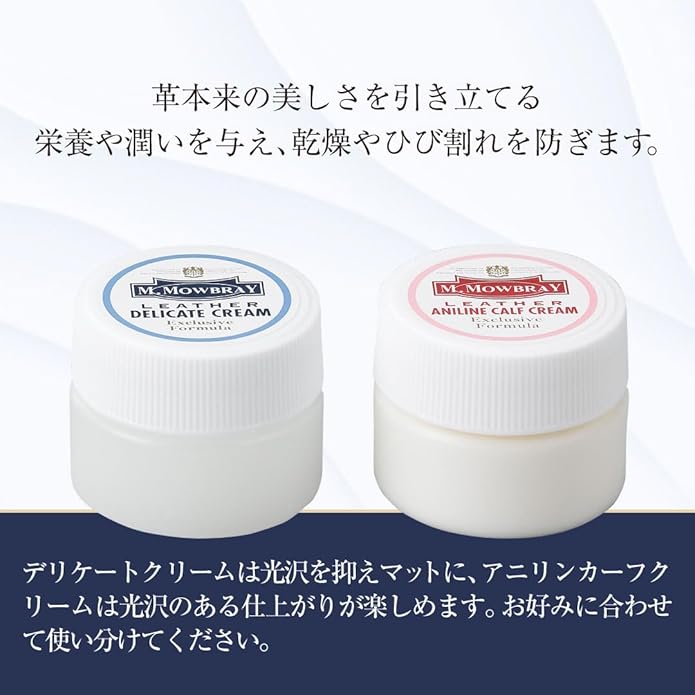 M.モゥブレィの代表的クリームが3種類入ったシューケアセットです。ケアするものが靴でも小物でも、クリームを使い分けることでケアすることが出来ます。※商品パッケージは予告なく変更になる場合がございます。予めご了承ください。