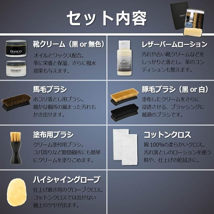 [Dasco] [ダスコ] 英国伝統の品質 靴磨きセット スペシャルグローブセット シングルDX(PA-DNN) 革靴 手入れ セット メンテナンス 靴クリーム 馬毛 豚毛 ブラシ クロス 着色 補色 キズ隠し