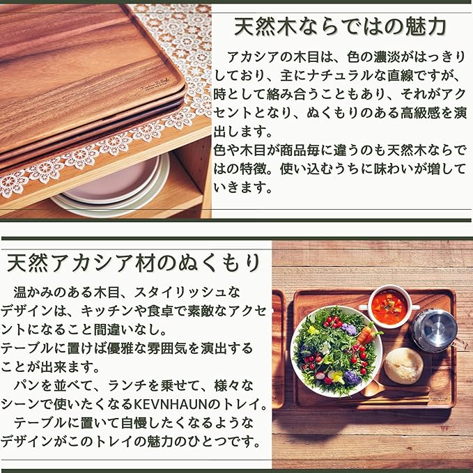 ケヴンハウン(Kevnhaun) 木製トレイ Lサイズ 30 40cm ナチュラルデザインの北欧風トレイ 天然木 トレー カフェの雰囲気を演出してくれる 割れにくいのでお子様のいる家庭でも 軽量ながらも強度のあるアカシア製 KDS.177-L